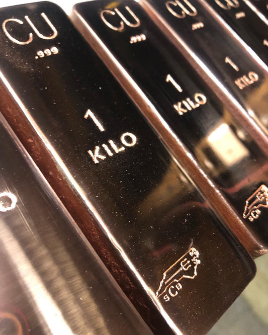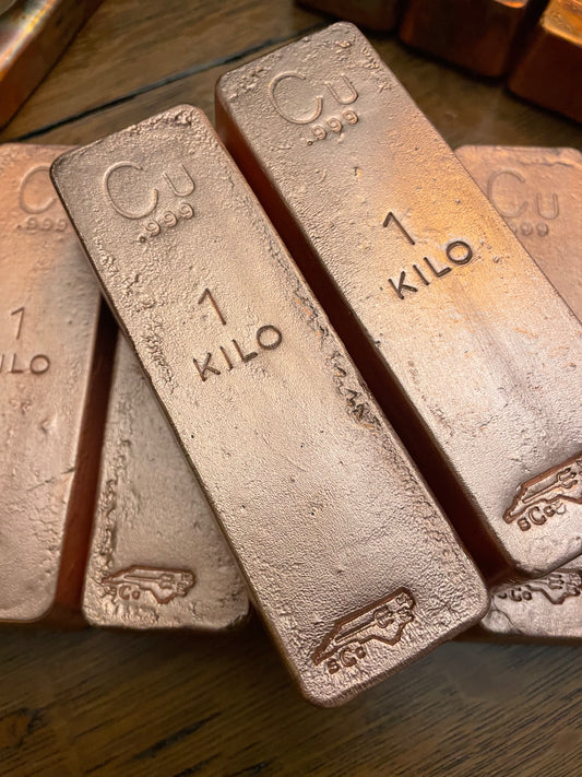 1 Kilogram .999 Copper Bar - Hi Polish Face