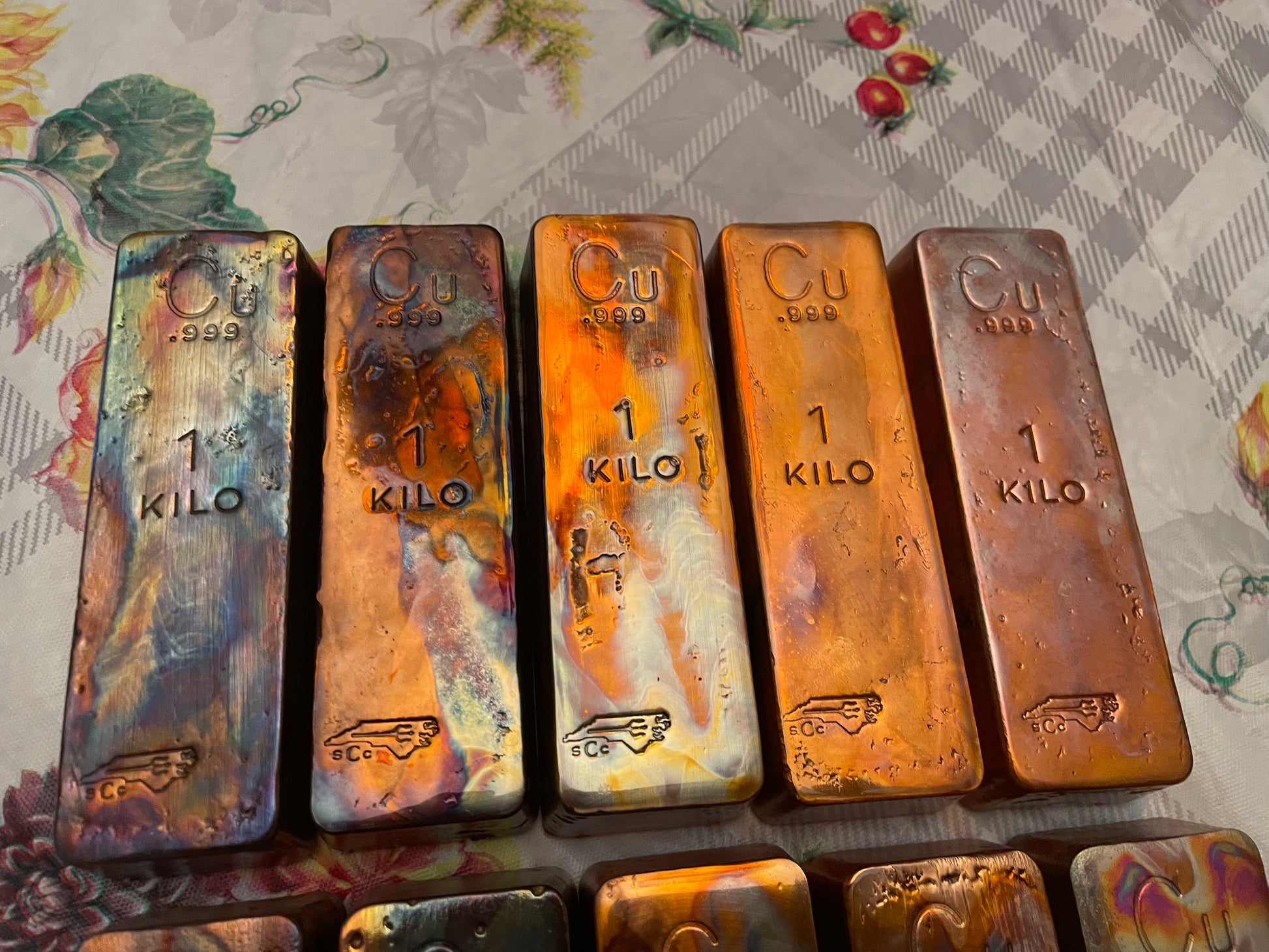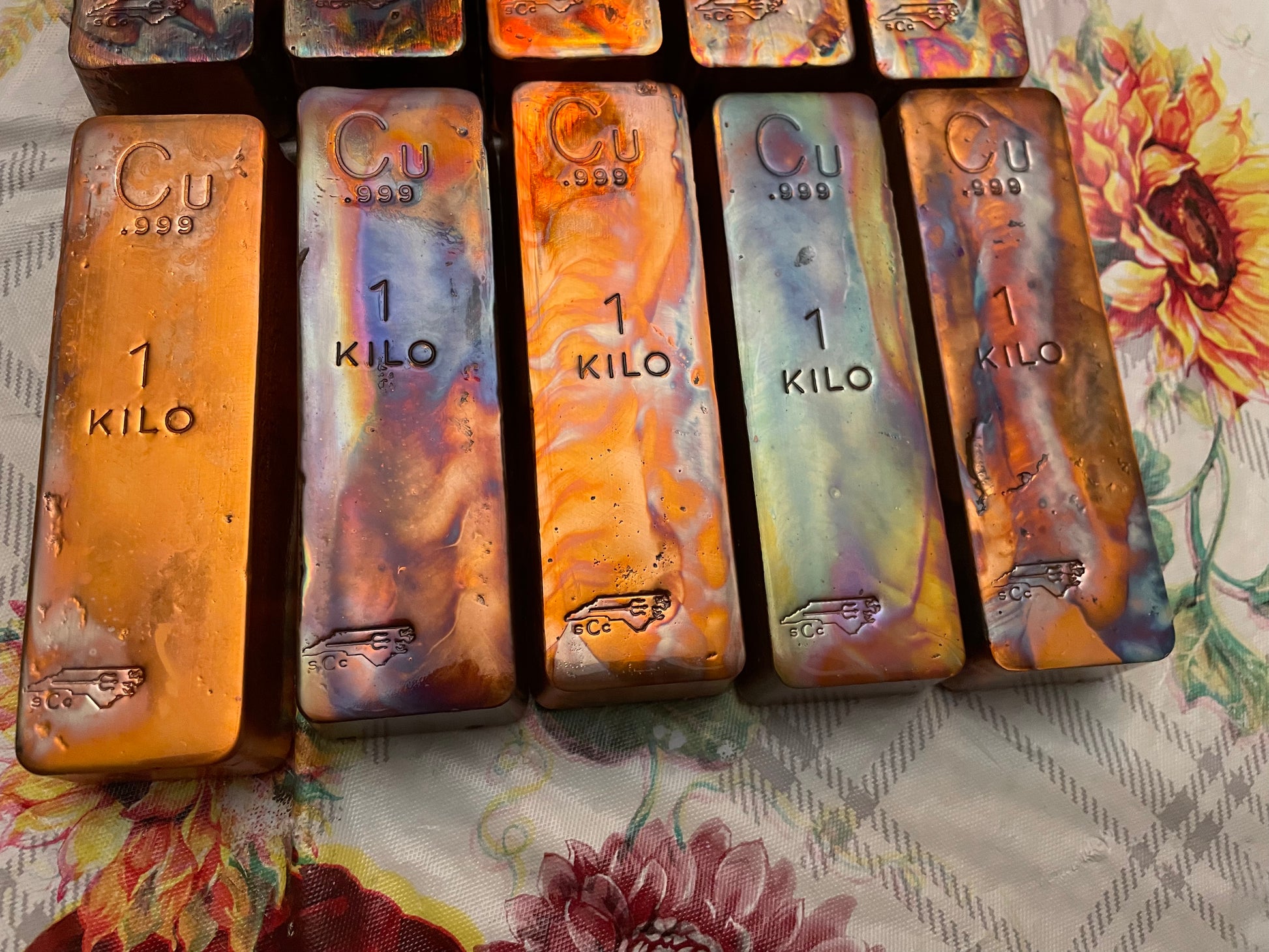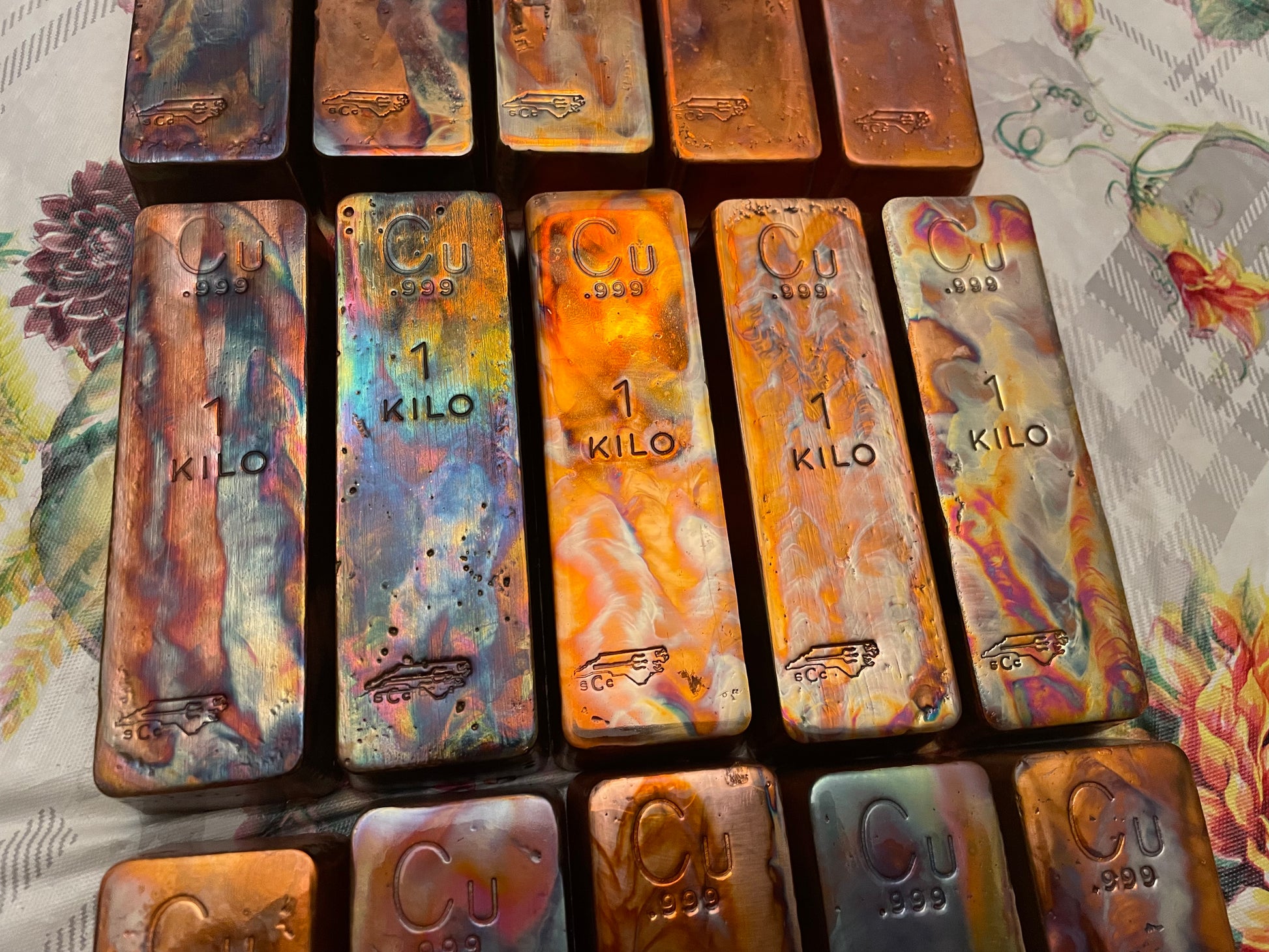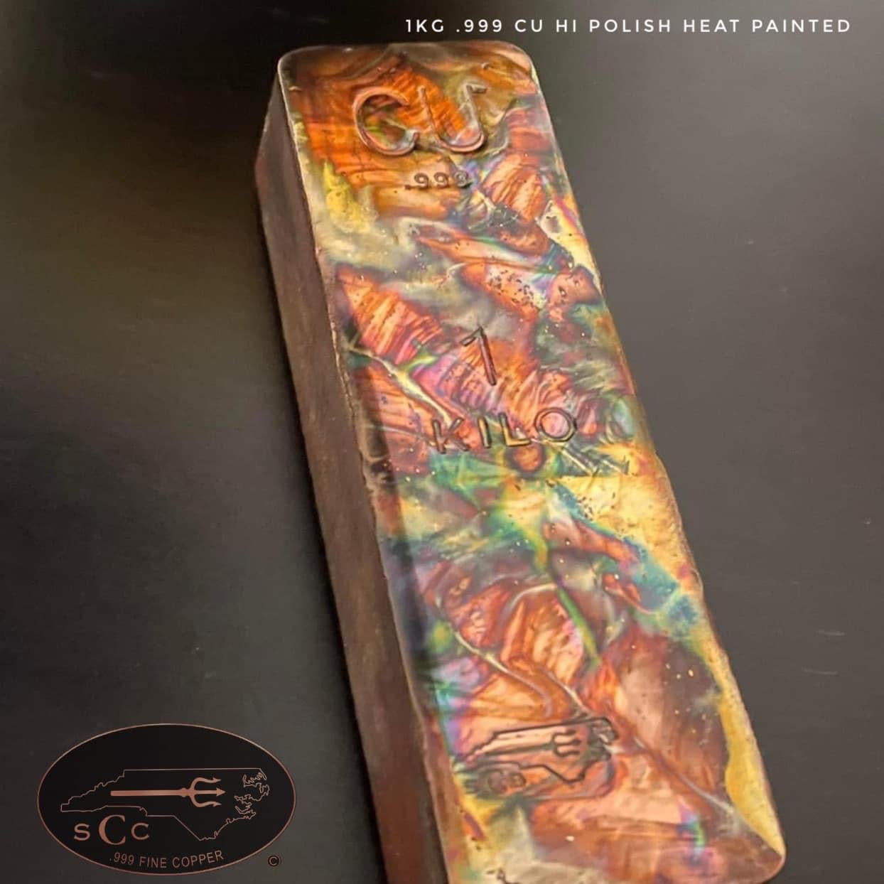 1 Kg Hi Polish Heat Painted .999 Fine Copper Bar