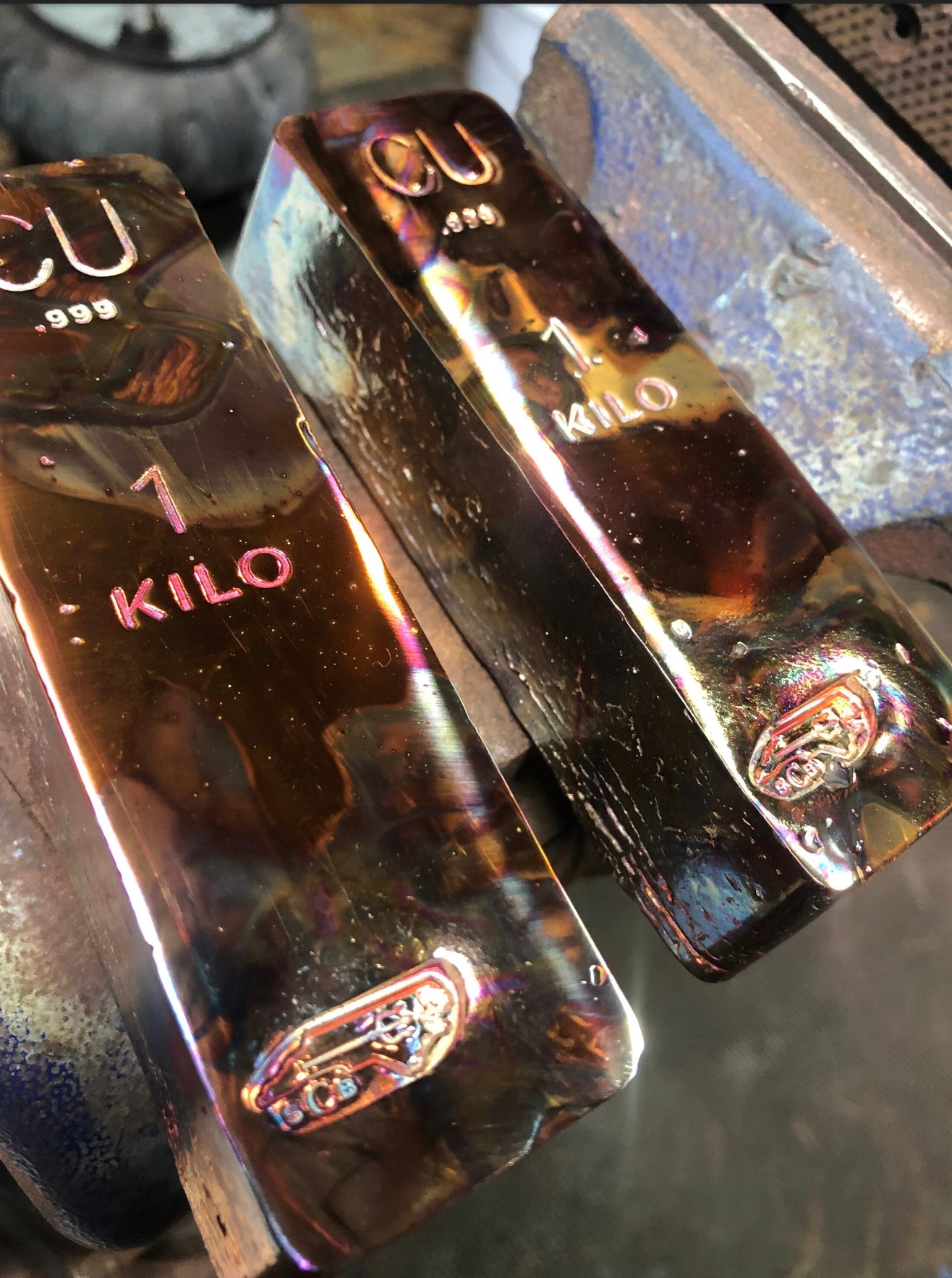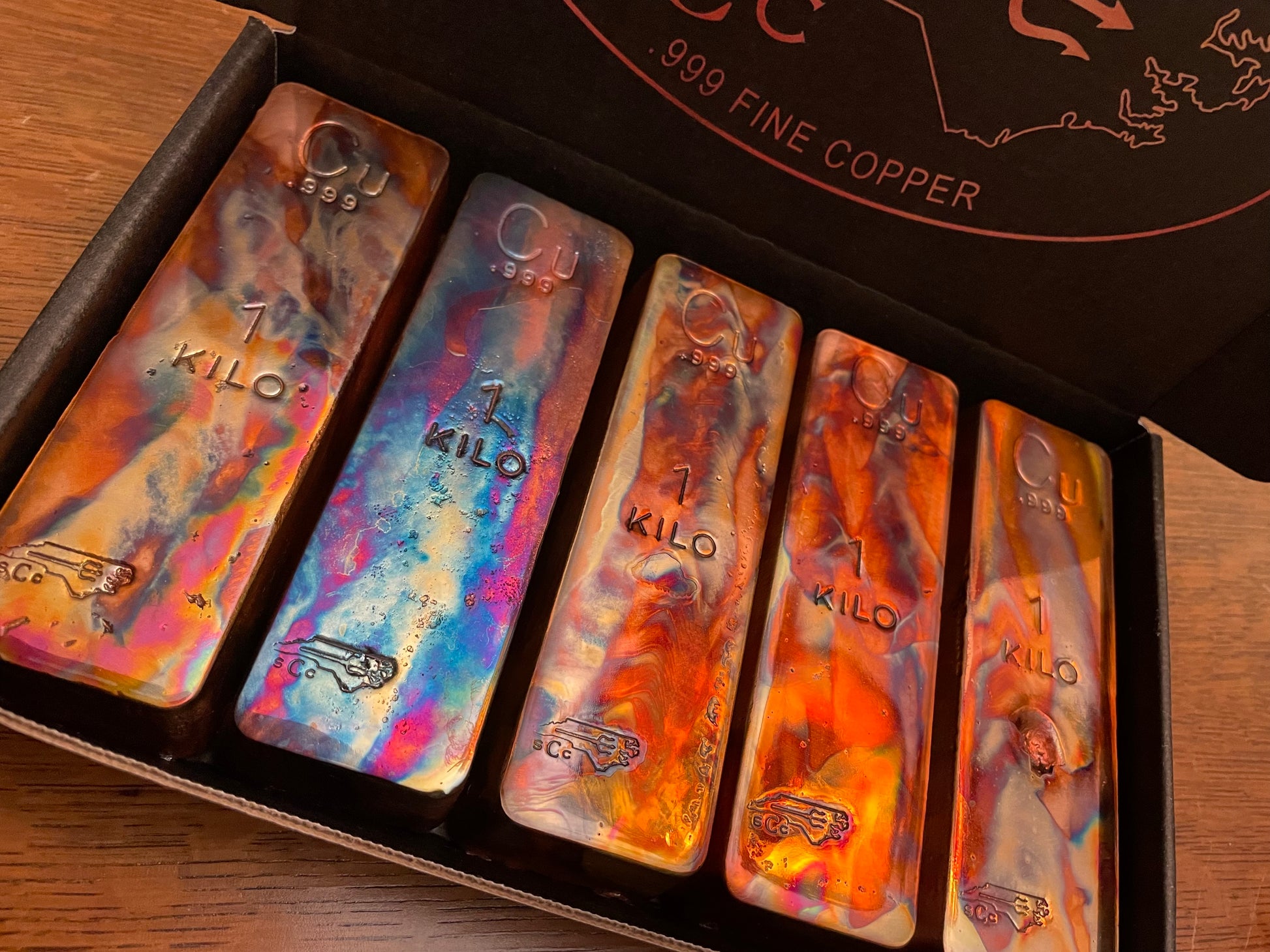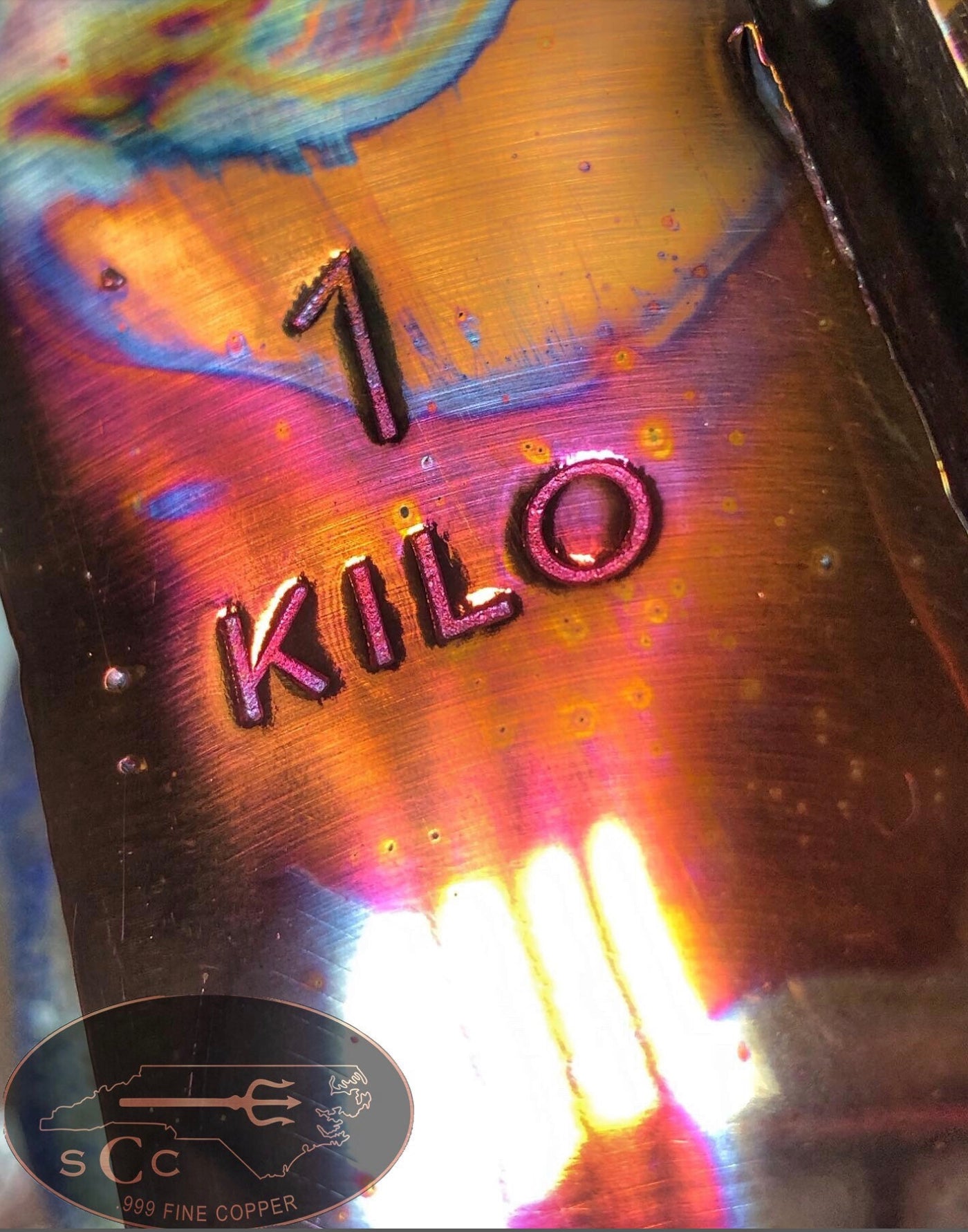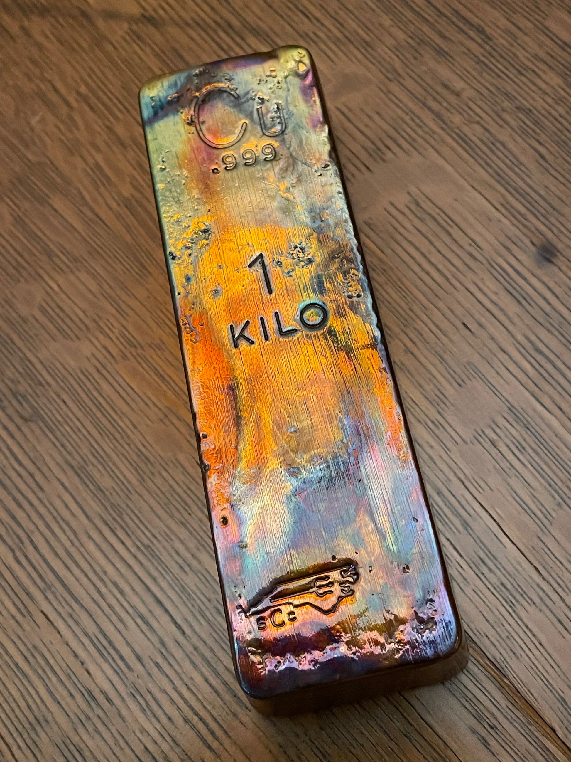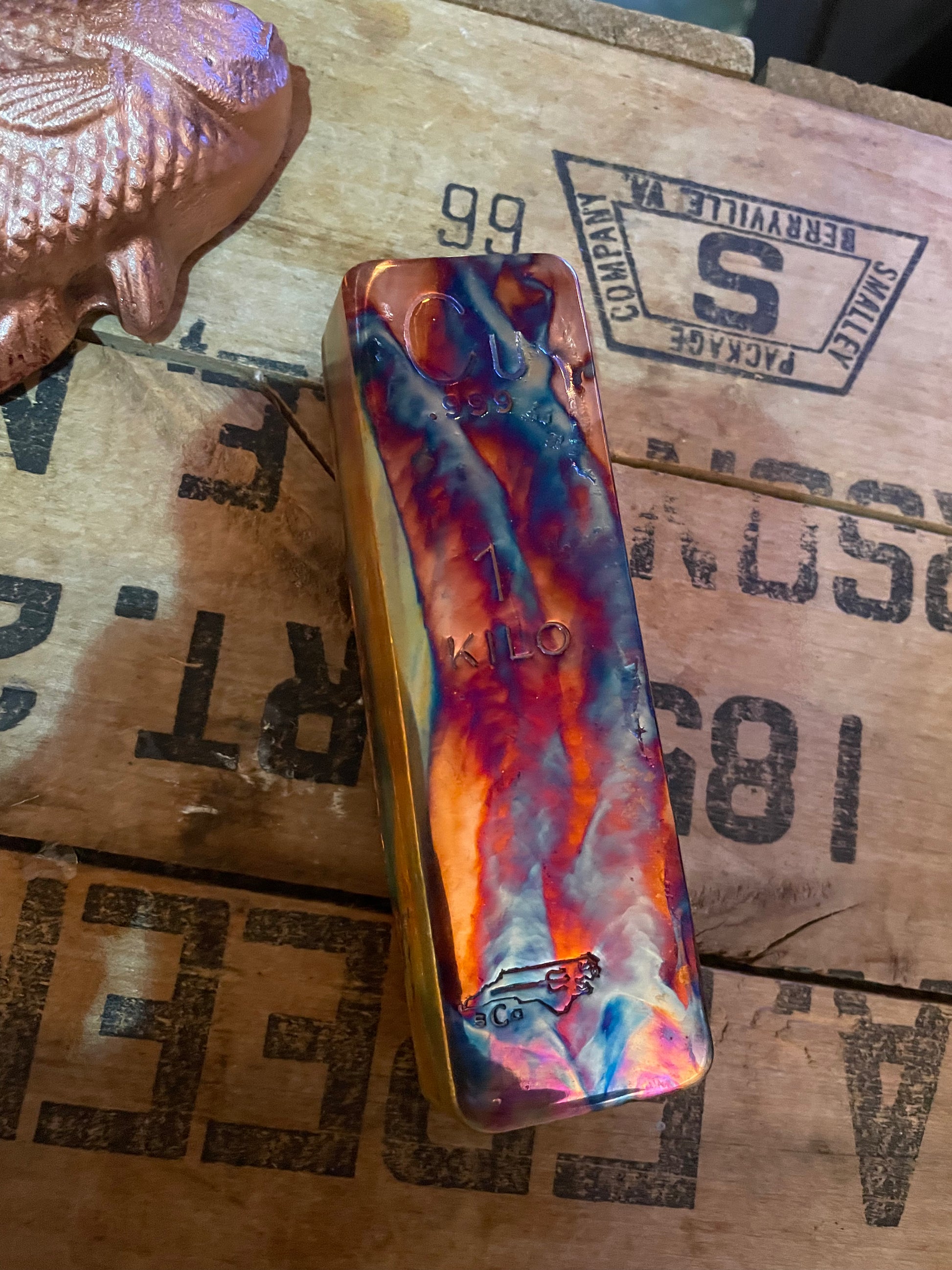 1 Kg Hi Polish Heat Painted .999 Fine Copper Bar