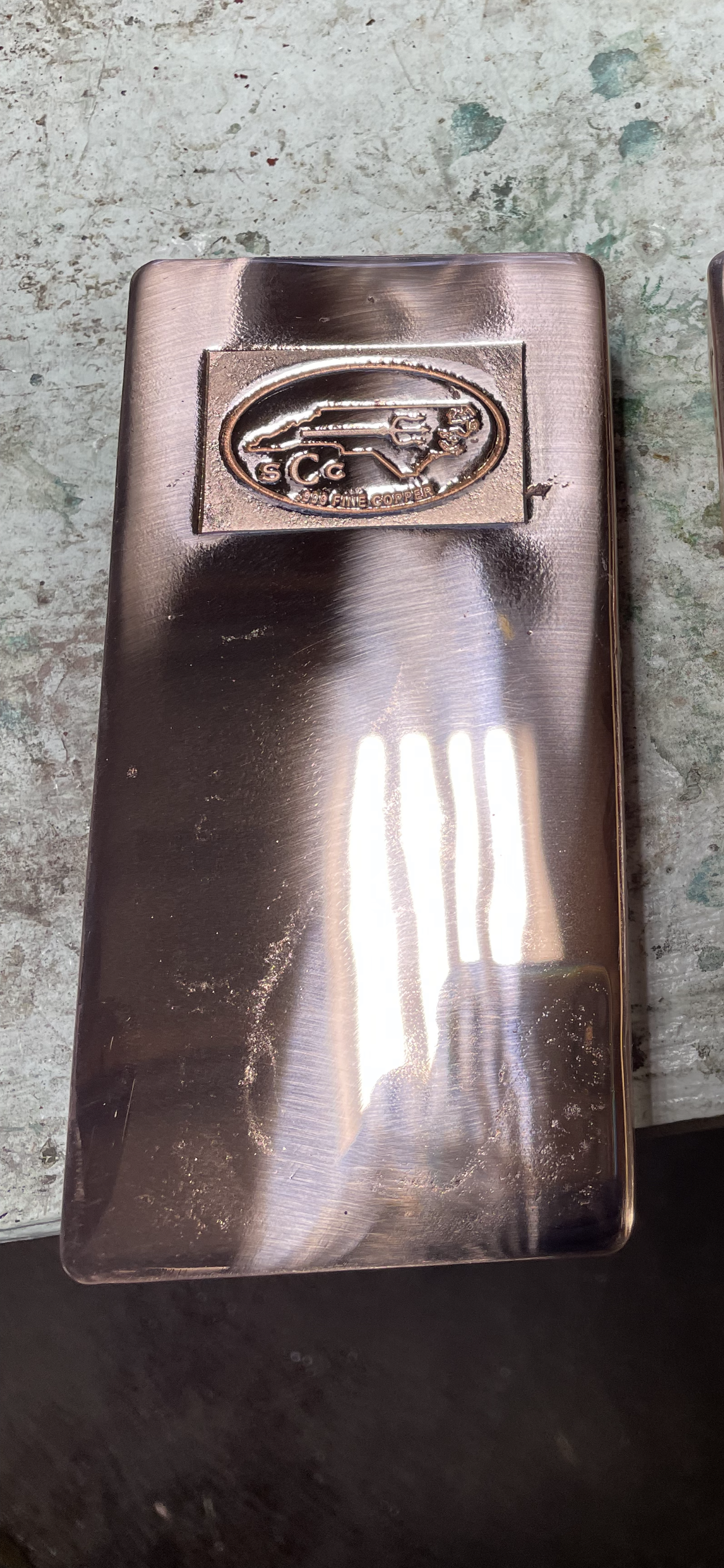 All bars hand poured and worked , Photos are examples of bars we have made. Your will be very similar in look and finish but slight variations do exist with every bar poured.