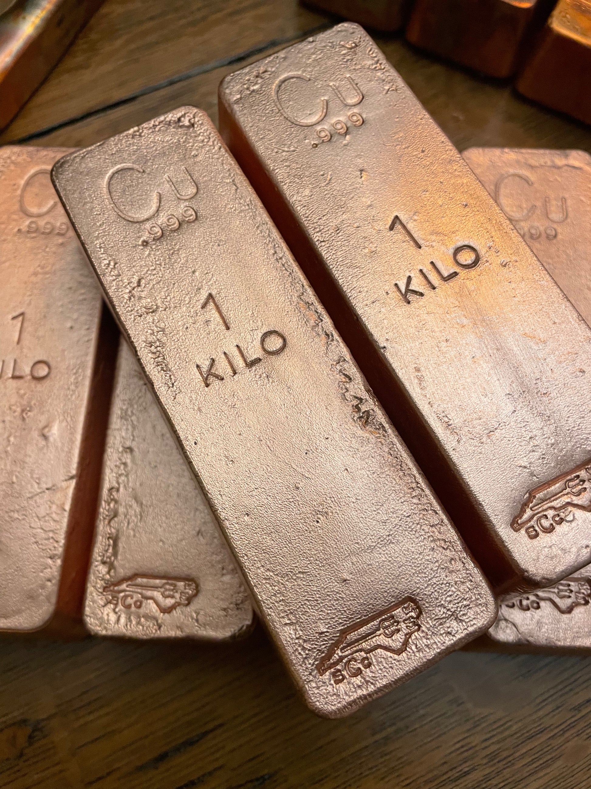 Lot of 10- One Kilo .999 Fine Copper Bar Poured By Silver Coast Copper