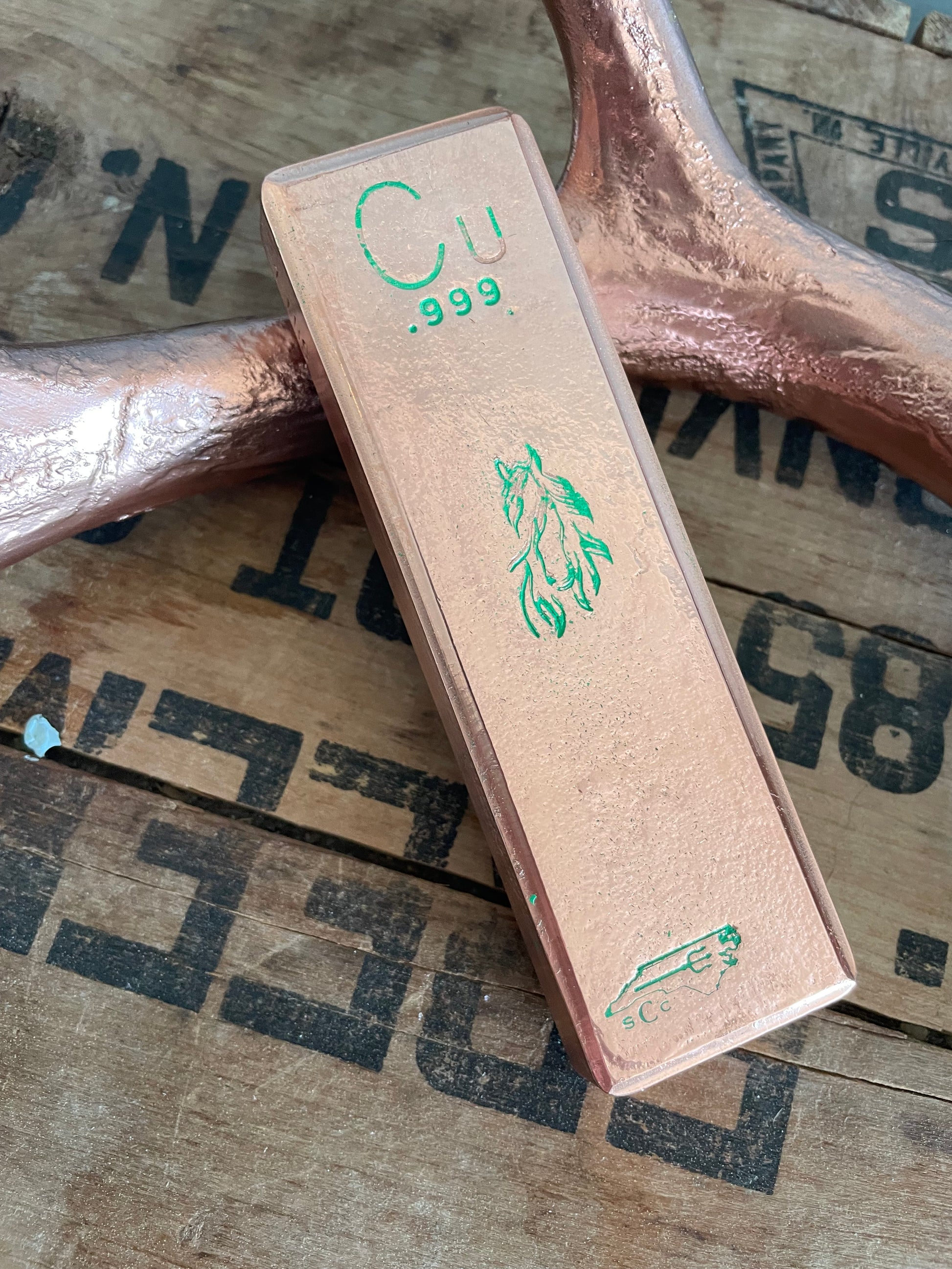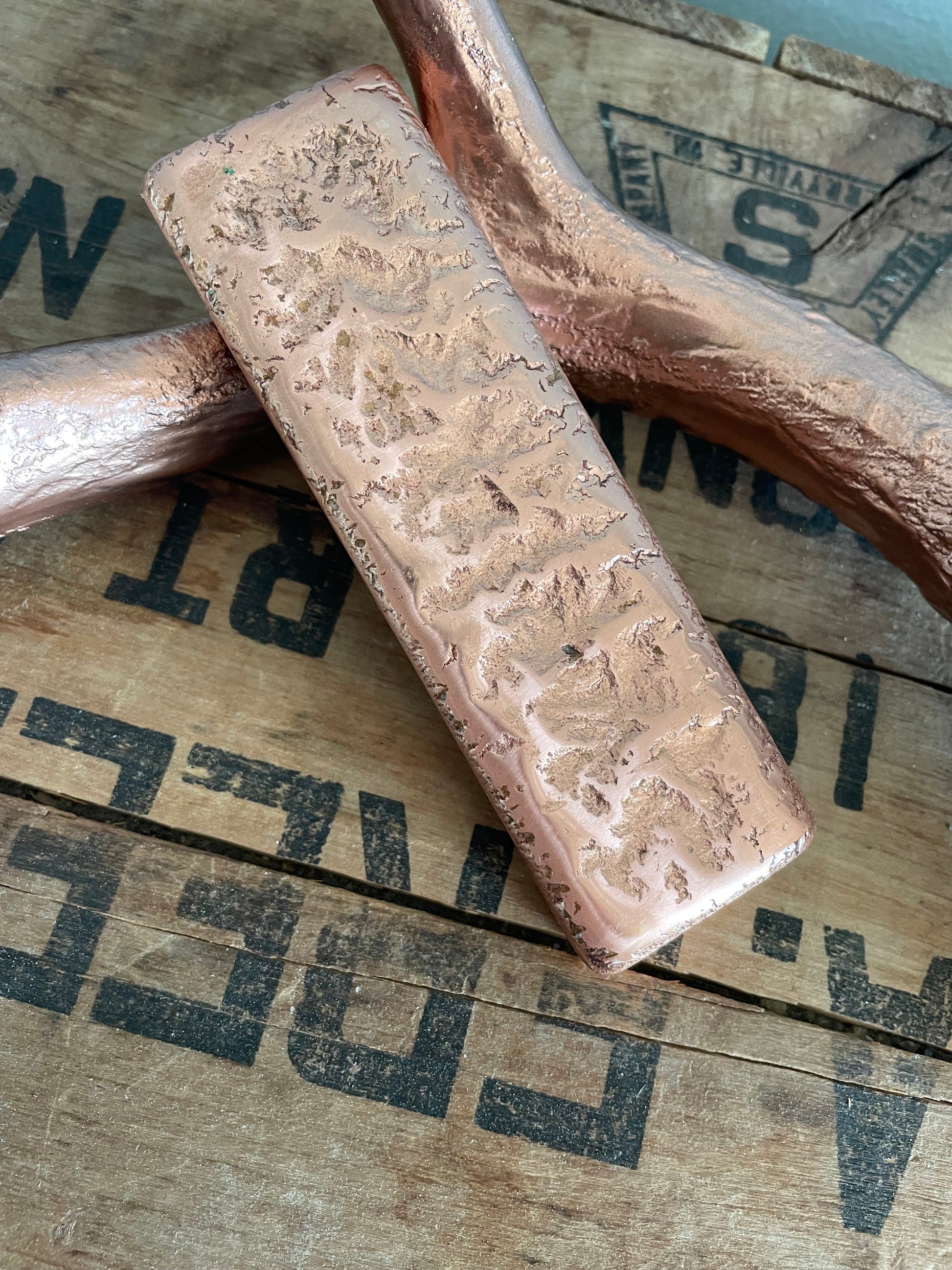 All bars are custom cast, hand poured , and hand worked . Heat painting is a technique of bringing out colors in the copper using heat in a painting technique. Incredibly tricky to do correctly the end results are absolutely gorgeous. No two bars are ever exactly the same