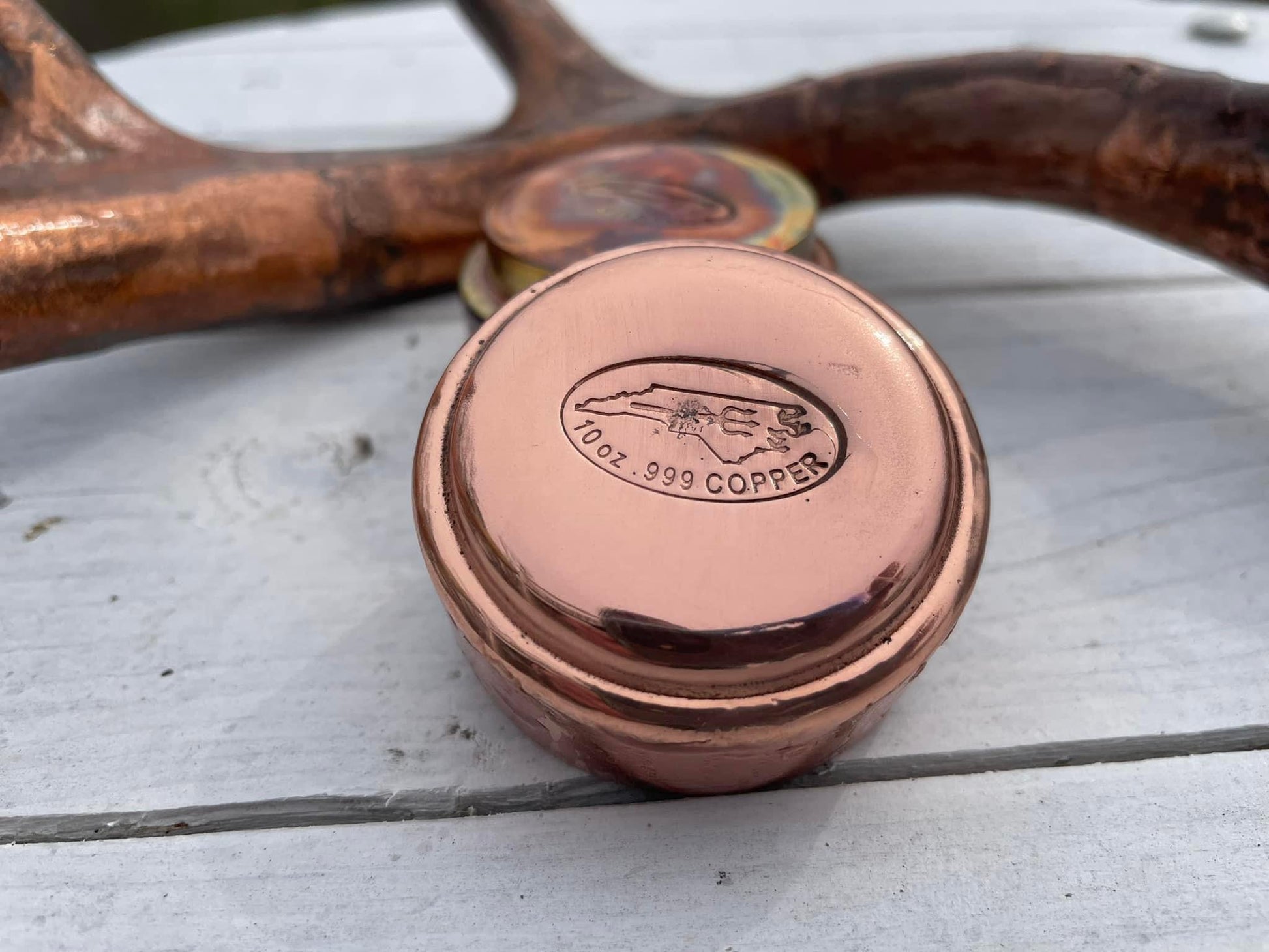 Handmade and Handcrafted on the coast of North Carolina at the foot of the outer banks. Silver Coast Copper specializes in premium copper art bullion that is beautiful to the eye and touch no two will ever be the same! Each one of these custom-made for your order! If there are specifics that you would like to achieve, please be sure and send an email using the contact us button on the front page. I will try to achieve your desired, look as close as possible. Clearcoated on all sides, so yes, you can Feel free to handle it often!